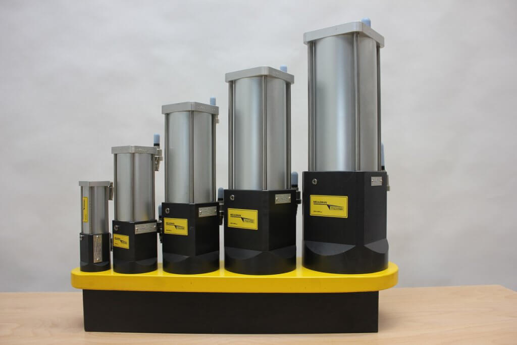 Alle ponsmachines en hydropneumatische cilinders die door Meuleman Engineering worden gemaakt werken standaard op 6 bar luchtdruk en worden door onze eigen engineering afdeling ontworpen en in onze eigen werkplaats geassembleerd en getest. Op ons You-Tube kanaal kun u meerdere machines bekijken.