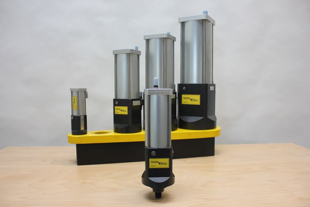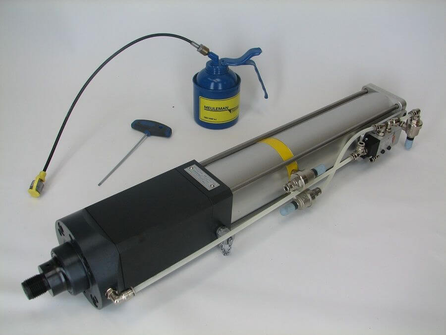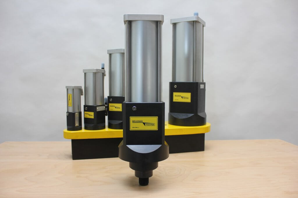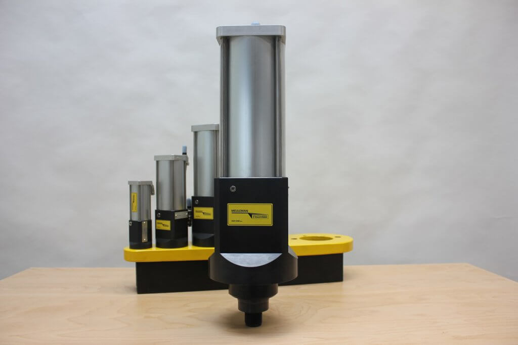 De hydropneumatische krachtclinders van Meuleman Engineering zijn een unieke productreeks welke vele toepassingen kent. Deze hydropneumatische krachtcilinders zijn eenvoudig aan te sluiten op standaard persluchtsystemen, hebben een compacte bouwvorm en zijn leverbaar met perskrachten van 8 tot 400 KN en een krachtslag tot 35 mm. De speciale snelslag krachtcilinders zijn ontwikkeld voor toepassingen waarin een grotere slag van het gereedschap benodigd is, zonder in te leveren op productiesnelheid. Deze snelslag variant is leverbaar met perskrachten van 50 tot 200 KN en een slag tot 150 mm.