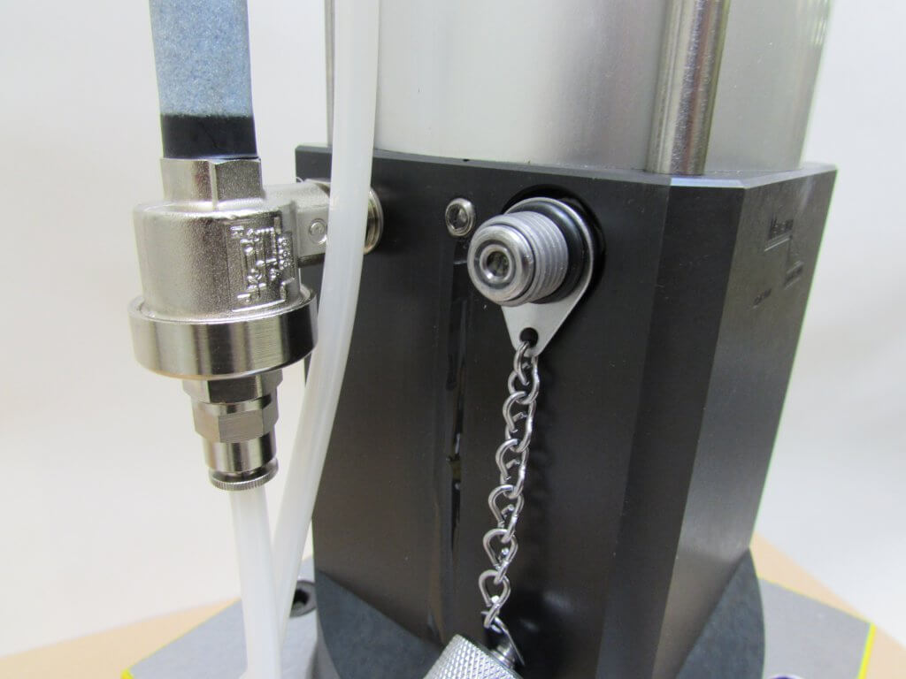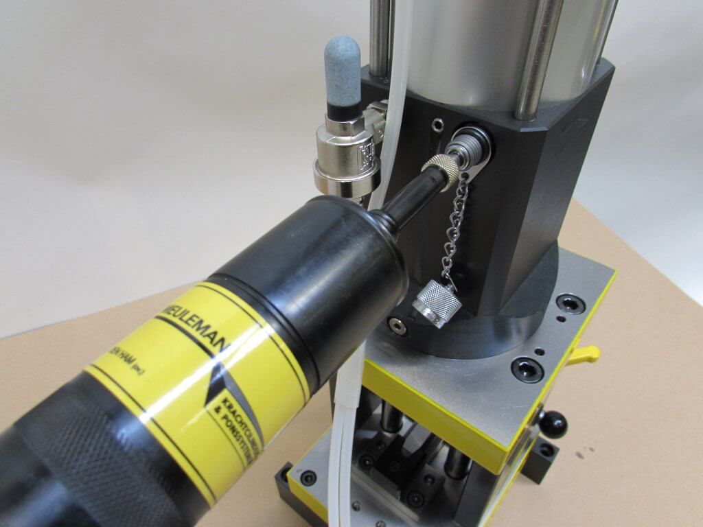 Onderstaand vindt u in 6 stappen hoe een krachtcilinder moet worden bijgevuld. Gebruik voor het bijvullen hydraulische olie met een viscositeit van 46. Een olie bijvulapparaat is bij Meuleman Engineering te bestellen. Voor nieuwe krachtcilinders kijkt u hier.