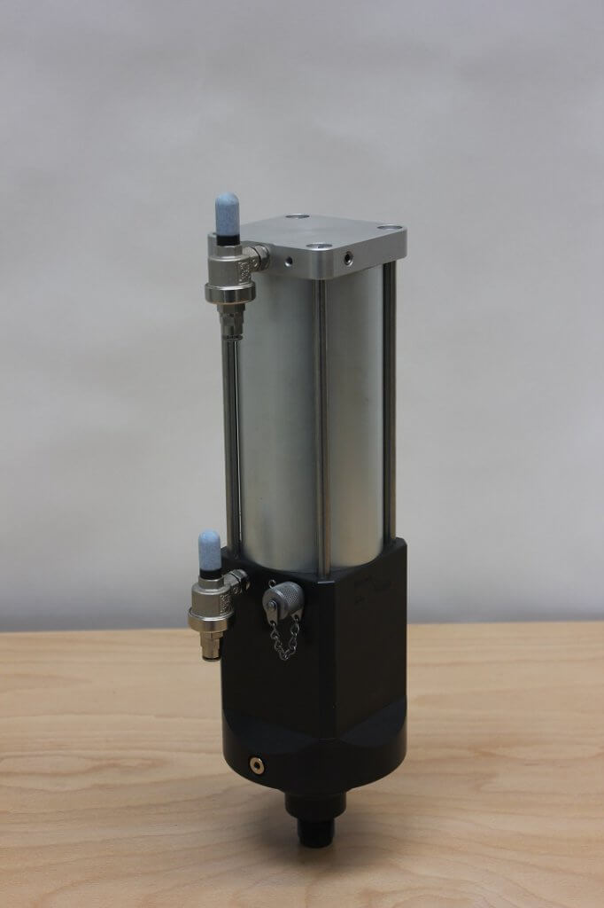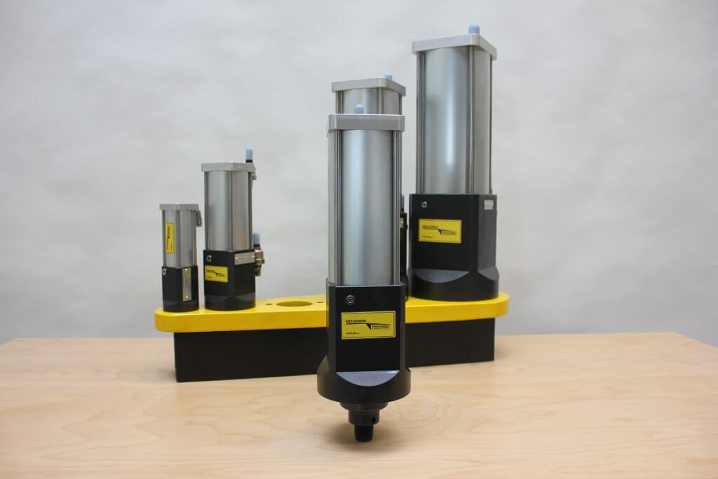 De hydropneumatische krachtcilinder KC10 bevindt zich in het midden van de range van krachtcilinders. Door zijn compacte bouwvorm in combinatie met grote ponskracht en slag is deze krachtcilinder zeer geschikt voor het aandrijven van zwaardere gereedschappen voor bewerkingen van metalen en kunststoffen. Mogelijke toepassingen van deze hydropneumatische krachtcilinder kunt u hier vinden. De engineering afdeling denkt graag met u mee om uw uitdaging om te zetten in een efficiënt en betrouwbaar productieproces.