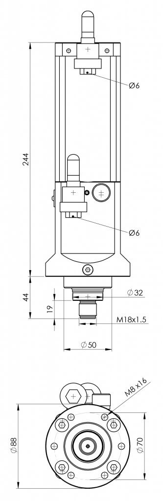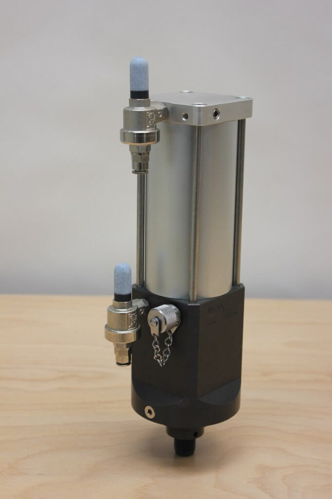 Krachtcilinder KC5 is een krachtige en compacte hydropneumatische variant in de range van krachtcilinders. Door zijn compacte bouwvorm in combinatie met grote ponskracht en slag is deze krachtcilinder zeer geschikt voor het aandrijven van verschillende gereedschappen voor lichtere bewerkingen van metalen en kunststoffen. De krachtcilinders worden bij Meuleman zelf gemonteerd. Mogelijke toepassingen van deze krachtcilinder kunt u hier vinden. De engineering afdeling denkt graag met u mee om uw uitdaging om te zetten in een efficiënt en betrouwbaar productieproces.