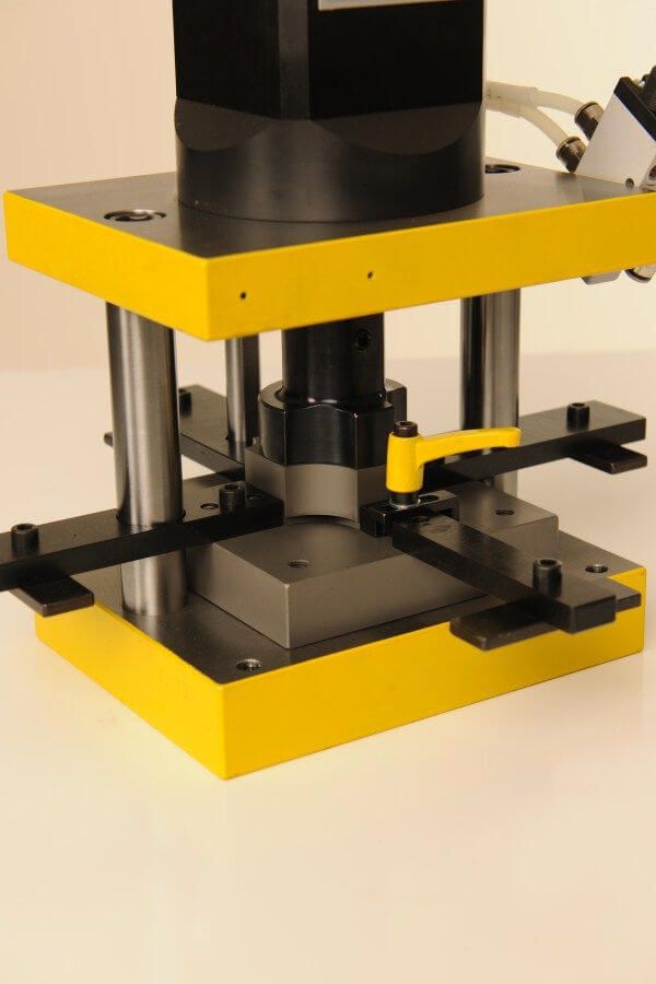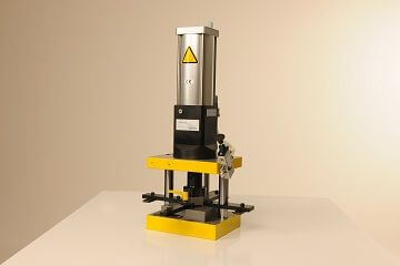 Radiusknipper met Meuleman krachtcilinder Werkt pneumatisch bij 6 bar luchtdruk. Bediening kan zowel met een handbediend ventiel of voetpendaal.